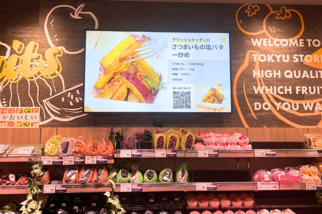 スーパーの店頭サイネージで認知獲得・販売促進。