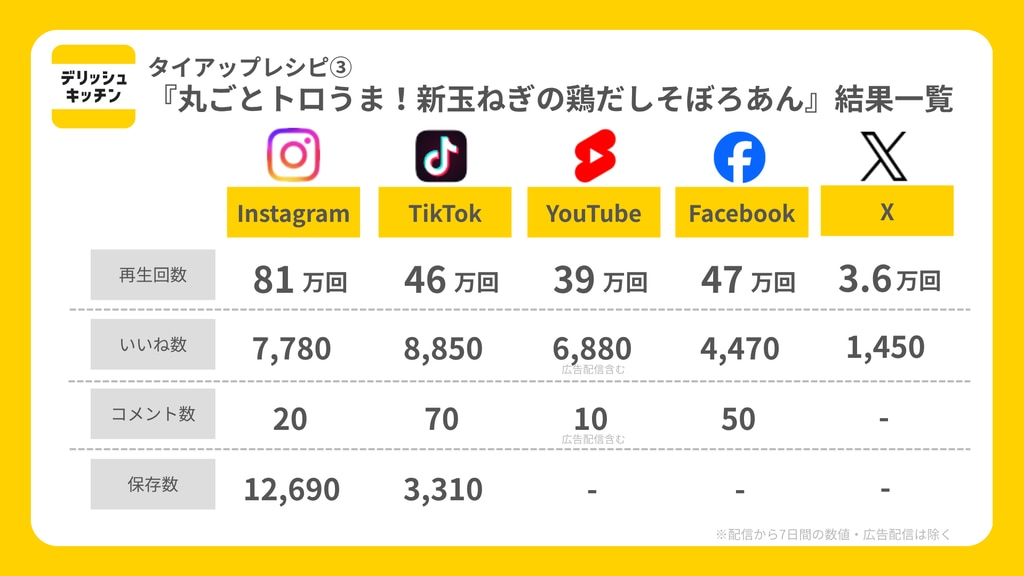 Result - タイアップレシピ3本の総再生数は1070万回*超え!