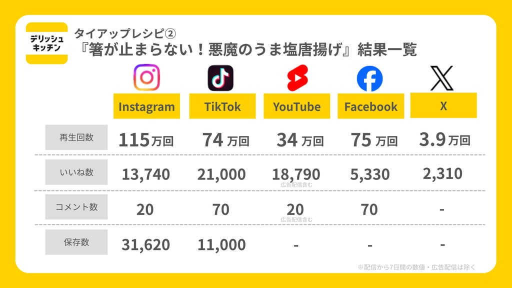 ※配信から7日間の合計数値(投稿3本分)・広告配信は除く