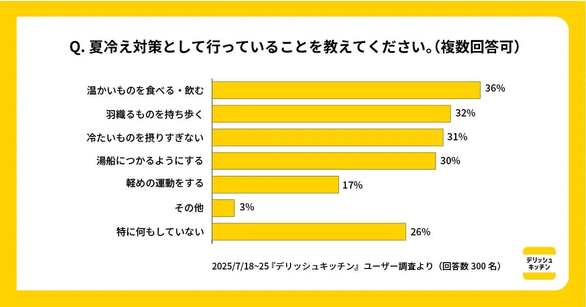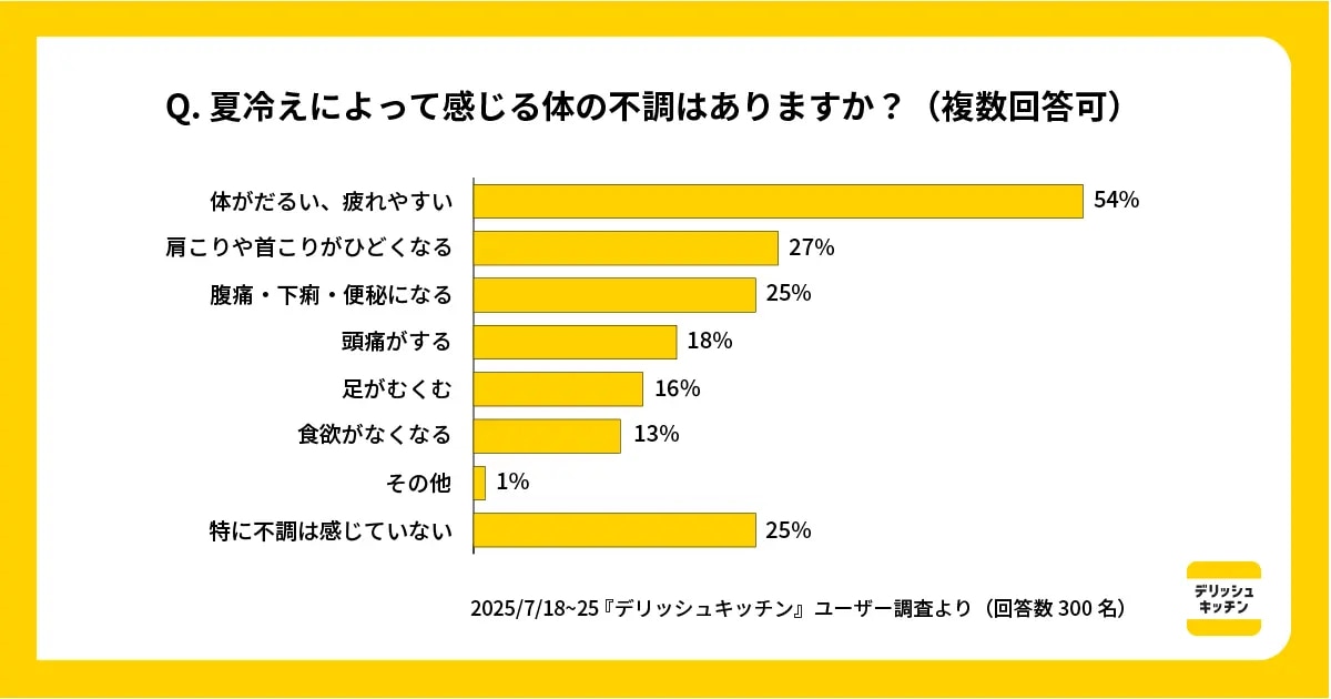 そこで今回、『デリッシュキッチン』のユーザーを対象に「夏冷え」に関するアンケートを実施。
