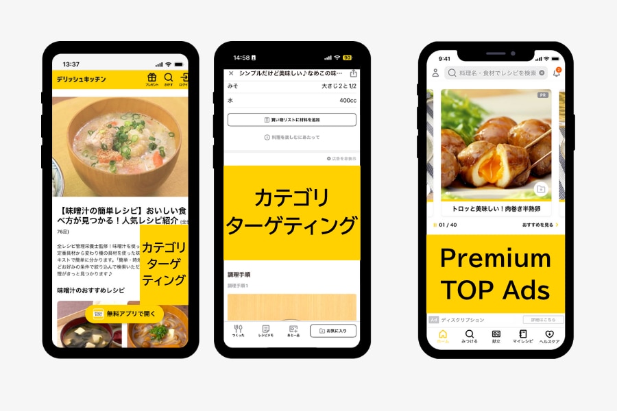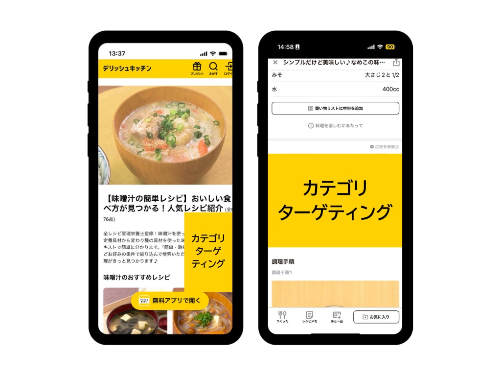 レシピ・食材カテゴリへのターゲティング配信も可能