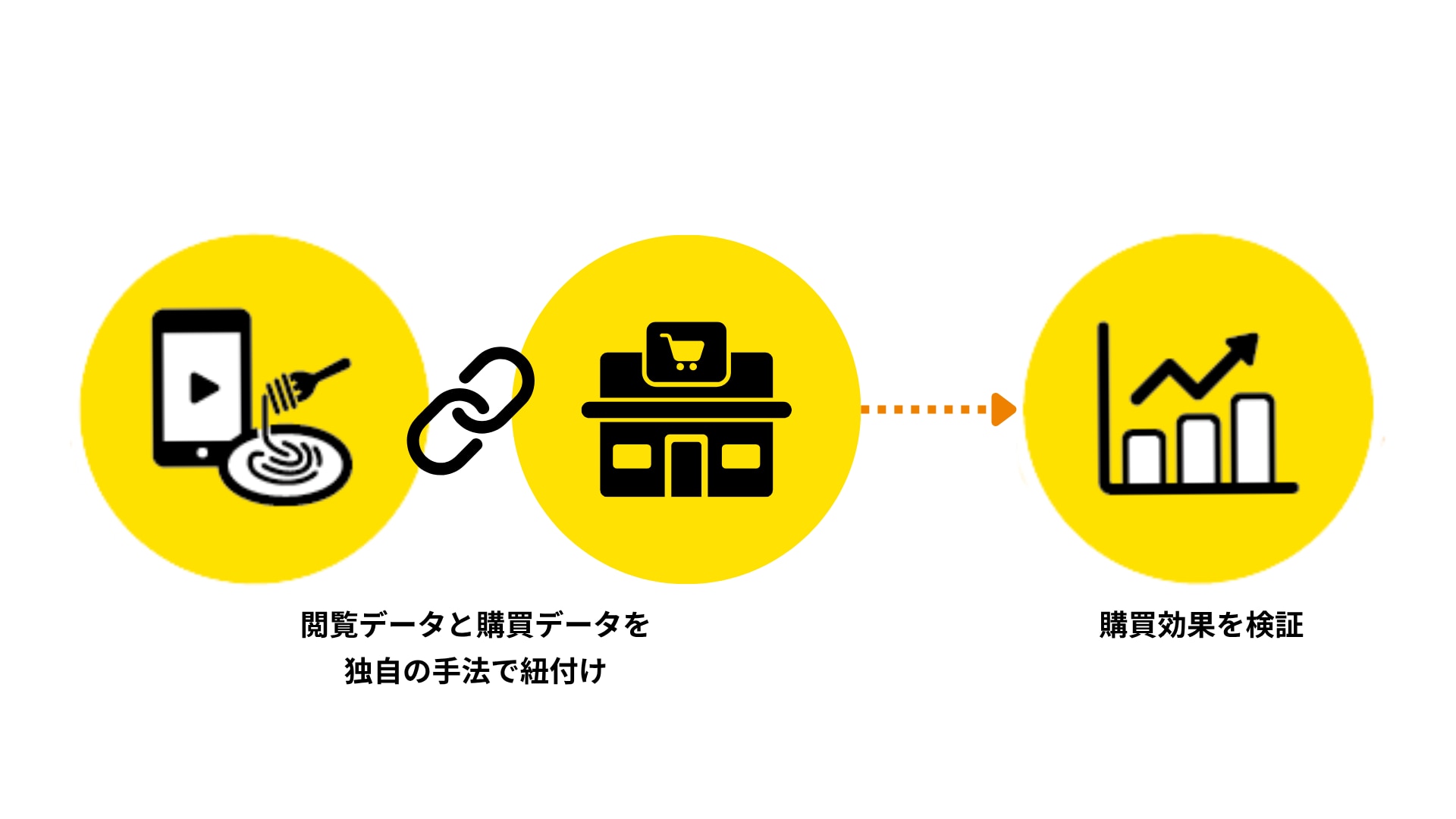 独自の手法で購買データと紐付け、従来は困難だった店頭での購買影響を可視化します。